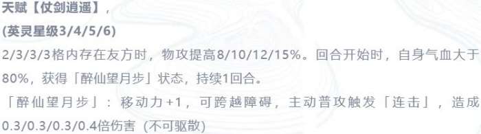 从一开始就已经明示了,3格以内有队友才能加攻,说明李逍遥是个抱团的英雄,不适合单打独斗。