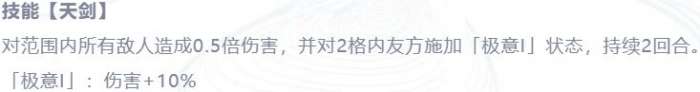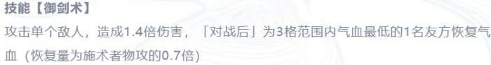 2格的飞刀,1.4天残倍率。这招明显是被诸葛艾的单点完爆了。低于现阶段模型的技能。基于有回血,也许能带。