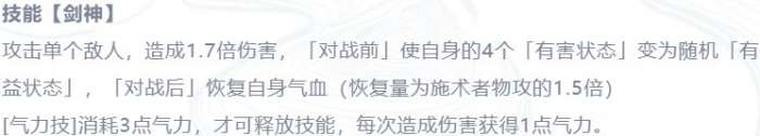 从技能本身来看相当强的一招,转化4个debuff专治白毛(经提醒,AOE有1/6概率roll出封咒)。战后1.5的回血必定能够把血量拉到安全血线,不会被轻易收割。但还是气力技的老问题。好在李逍遥攒气力不难。