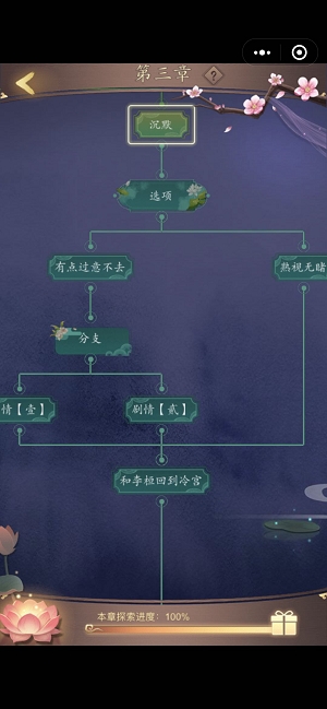 冷宫外遇到李琰问你的行踪,选择好奇心作祟后,走永宁王的相关选项,就会增加好感,上一章被王爷喂药后,得知了你不喜欢苦,就可以开启本章另一段剧情;