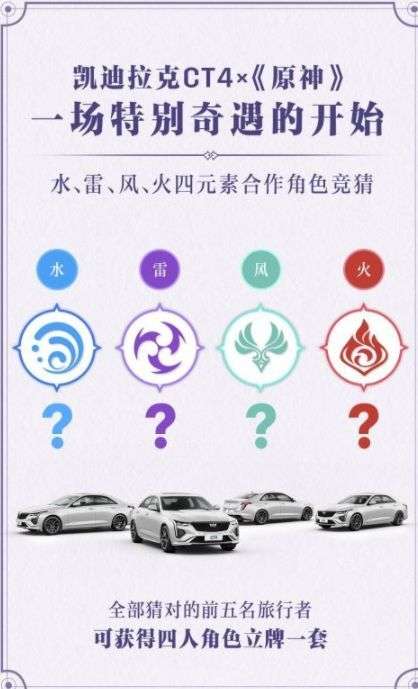 分别持有水、雷、风、火神之眼的四位神秘角色将与凯迪拉克CT4一起带你奔赴属于你的冒险之旅。