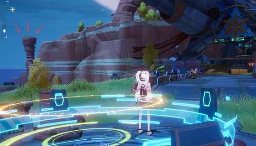 传送到“折跃门-MEGA擂台”沿着下图箭头方向,向前走到北边的山丘就能看到“Mega擂台”风景点。