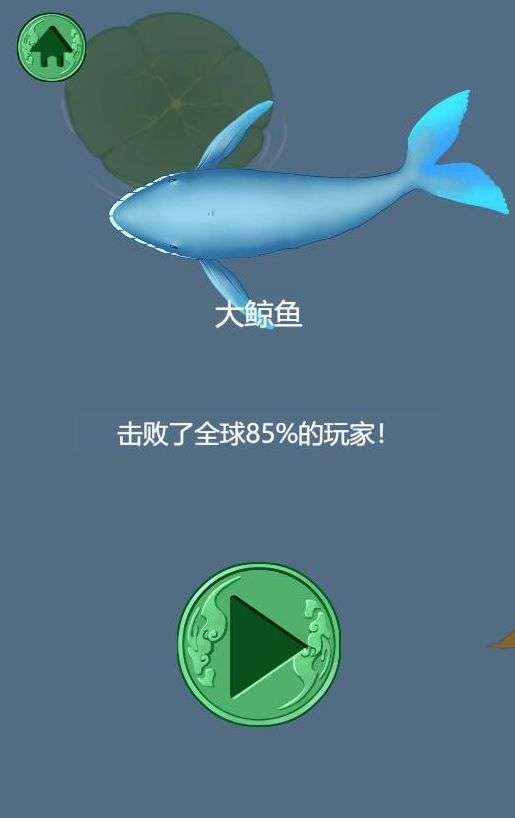 当你面对比你强的对手,比如:锦鲤,甚至鲨鱼。你一定要躲它们远远的。只要轻轻一碰,你就会退回上一个等级的形态,最终是小蝌蚪。如果在小蝌蚪形态下,再被碰一下,游戏结束了,你也就输了。结束的时候,游戏会记录你最高纪录的形态。