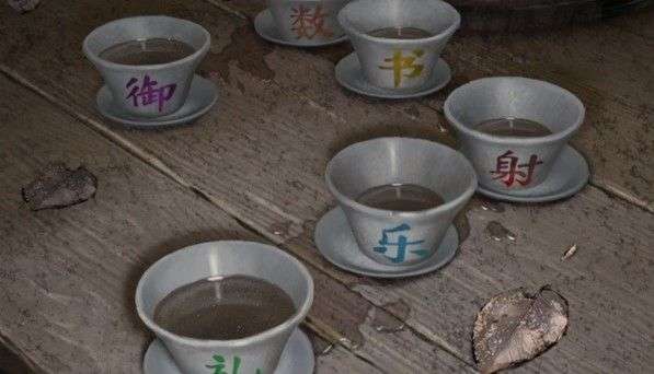 在将香灰水倒在院子里的茶杯,就可以看到茶杯上的颜色了。这样就可以将箱子上六艺的字和颜色连起来就可以了。