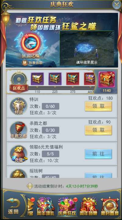 活动期间,完成游戏内各种副本或者日常任务,可获得狂欢点。