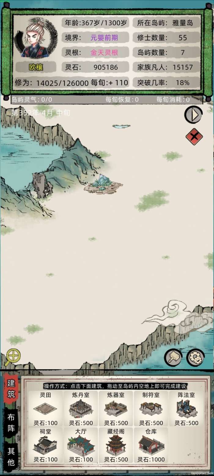 小技巧:当你有几个筑基期修士时,可以多尝试去打没有门派的中型岛,先保存!中型岛会有两种敌人,一些是四级怪,一些只有二级怪,打下来元婴前基本就不愁灵气了