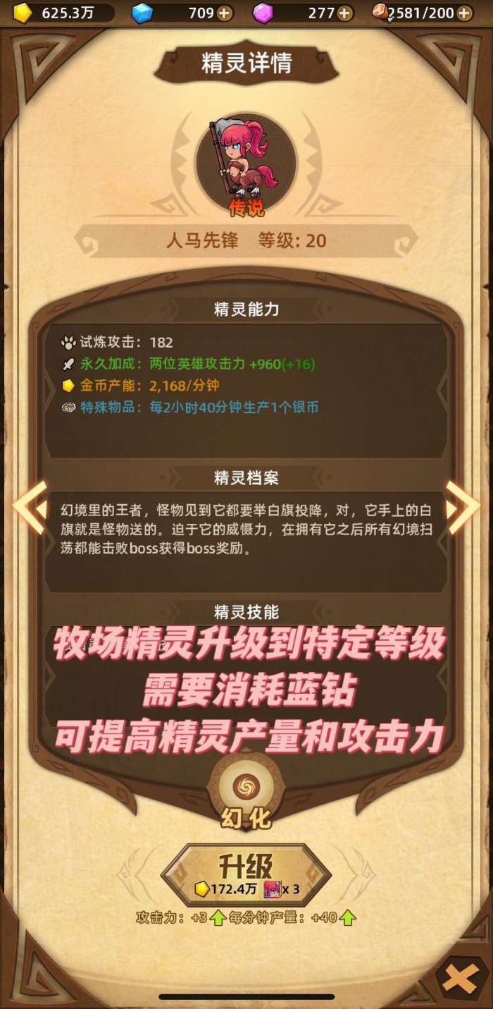牧场精灵每升一定等级需要花费蓝钻,但花费不多,提升牧场精灵等级可以提升整体战力和牧场产出,建议可优先投资蓝钻。