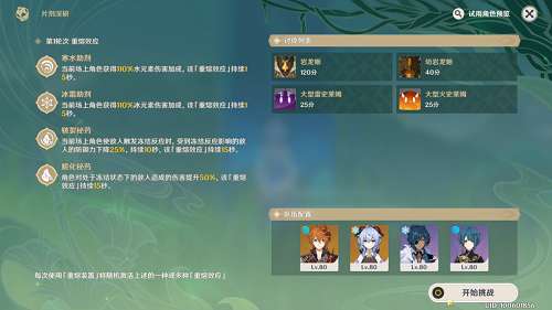 因为选择的难度一,敌人血量不高。挑战时甘雨在地图中心放个元素爆发,然后凯亚行秋元素爆发脱手用公子收割即可,公子元素战技进入冷却后换至甘雨输出即可。