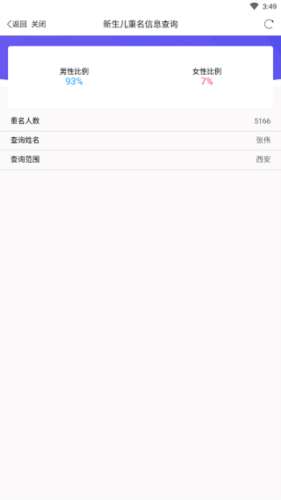 3、查询成功,图中可以看到同名人数和男女占比等信息,十分好用