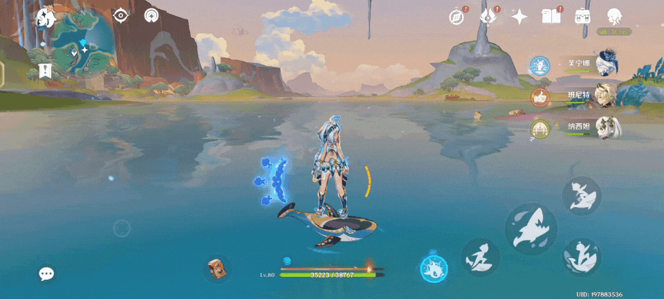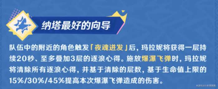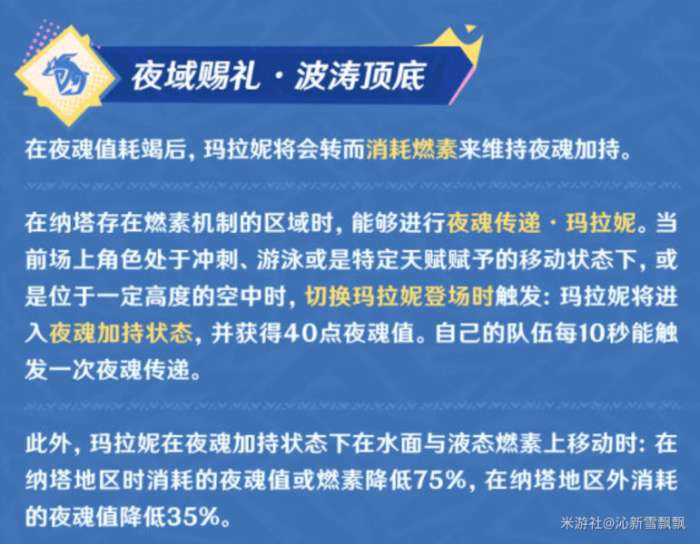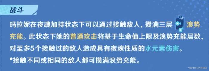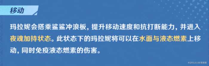 玛拉妮释放元素战技会进入夜魂状态,并踏上冲浪板,该状态下抗打断和移动速度提高。