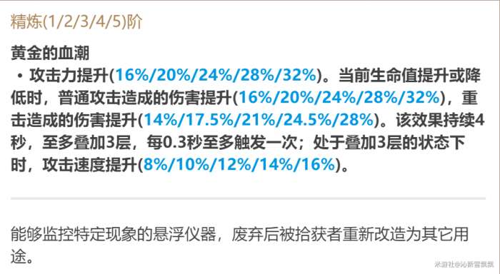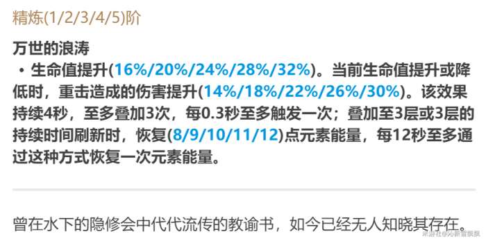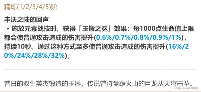 新地区的锻造武器,武器基础给予了生命数值,武器效果基于生命值上限提升普攻伤害,元素战技释放触发