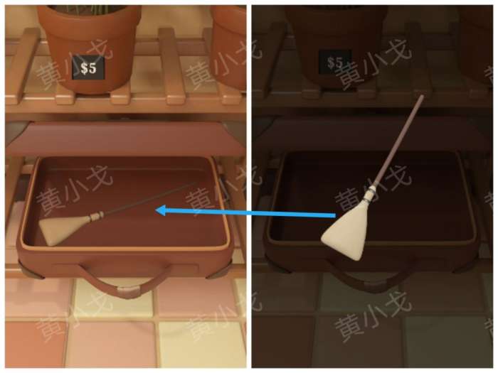 4.点击左侧架子上的盆栽,贴上【价格贴】