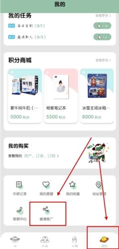 1、首先打开app进入【我的】界面,找到最下方的【邀请推广】并进入;