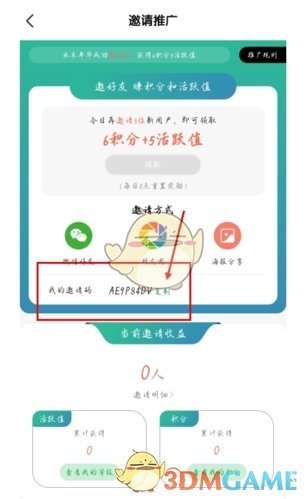 2、然后在中间可以看到自己的邀请码,点击右侧的复制即可发送。