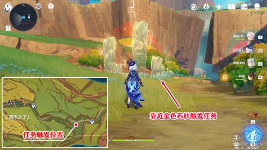 初次来到纳塔时,当我们走到下图所示位置,靠近这里的金色光柱时,就会被吸入另一片空间,同时触发此任务。