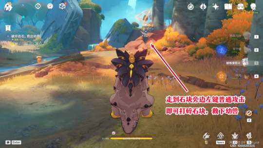 剧情结束后,我们操作嵴锋龙靠近西边的岩石,点击左键普通攻击即可将岩石破坏,救出里面的小嵴锋龙。