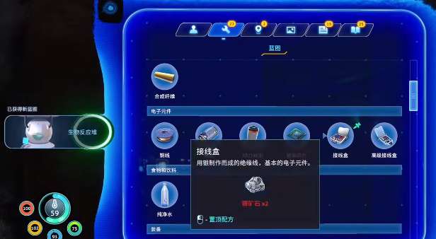 在合成的过程中,还需要一些核心的组件,例如智能芯片,电池,还有接线盒。这三个组件都需要提前的收集,好在所有的原材料都可以在初始的浅水地带找到。这里的地形比较平缓,没有强力的敌对生物,而且能见度也会比较高。是新手一开始采集物资的好选择,并不需要冒险深入深海。电池的制作还需要铜矿石以及酸性蘑菇,逃生舱周围的深海区域还可以看到一些裸露的铜矿石,那些酸性的蘑菇基本上都是在岩石的边上,采集之后就可以得到电池。