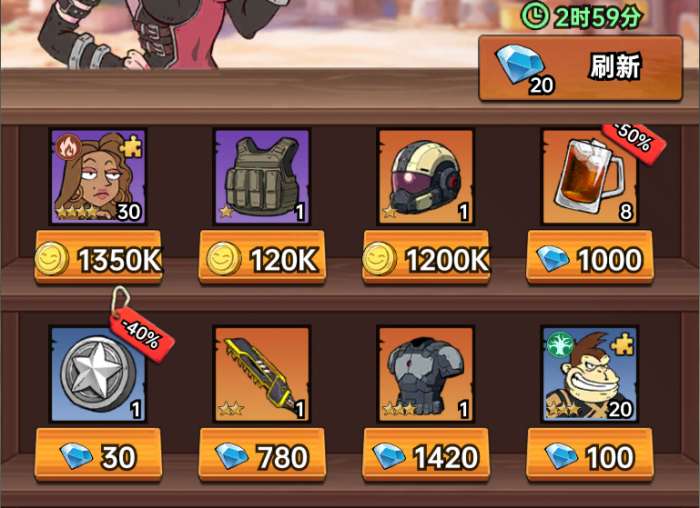 4、市场购买打折物品,并适当刷新购买打折可乐。(实打实的折扣!)消耗1000以上钻石。