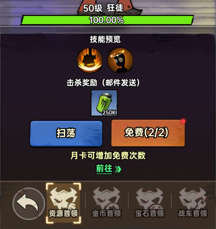 四个资源BOSS分别对应强化剂,金币,宝石碎片,战车强化材料奖励。幸存者可根据自身需求进行挑战,越高级的BOSS可获取的奖励越多,难度相应也会更高。