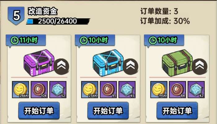 升级订单可大幅提高金币与兑换代币收益,前期金币获取渠道较少时可以将订单升到橙色品级或满级,主要获取金币收益,中后期根据公会币收益适当升级订单。每日根据资金等级的不同最高消耗600左右的钻石。