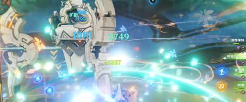 2、接着给敌人挂上水元素,用万叶开大扩水增伤,降低敌人水元素抗性