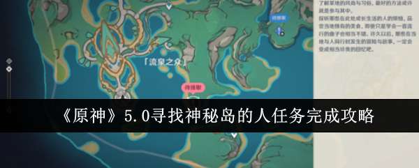 原神5.0寻找神秘岛的人任务怎么完成?原神5.0版本上线后新增很多任务玩法,其中寻找神秘岛的人是传说任务的第一个流程,那么寻找神秘岛的人任务怎么做呢?下面小编就给大家带来原神5.0寻找神秘岛的人任务攻略介绍,有需要的小伙伴不要错过,快来一起看看吧!
