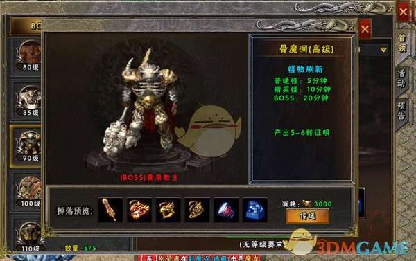 4、这样就进入了【骨魔洞(高级)】,在这里玩家可以尽情的击杀85级以上的大BOSS;