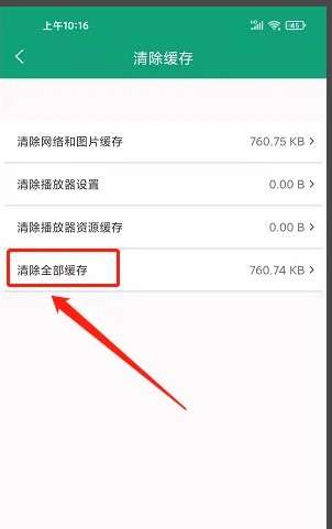 进入关于界面,点击【清除缓存】。