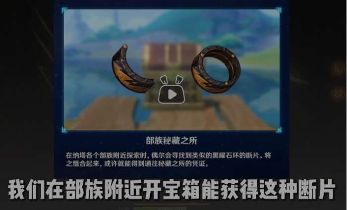 1、在回声之子东南方,需要对应的黑曜石环解锁,我们在部族附近开宝箱能获得这种断片,可以看到里面还有10个5星圣遗物的胫子。