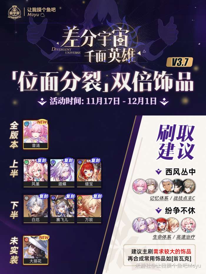 《崩坏:星穹铁道》V3.7位面分裂双倍饰品刷取优先级推荐: