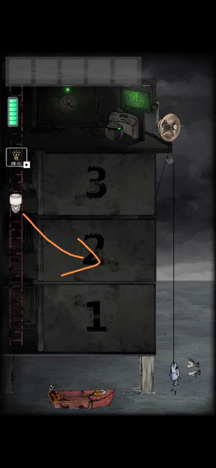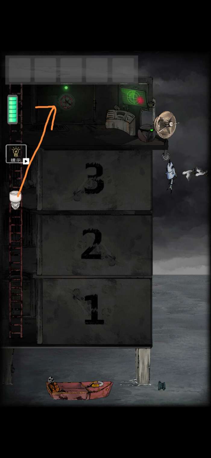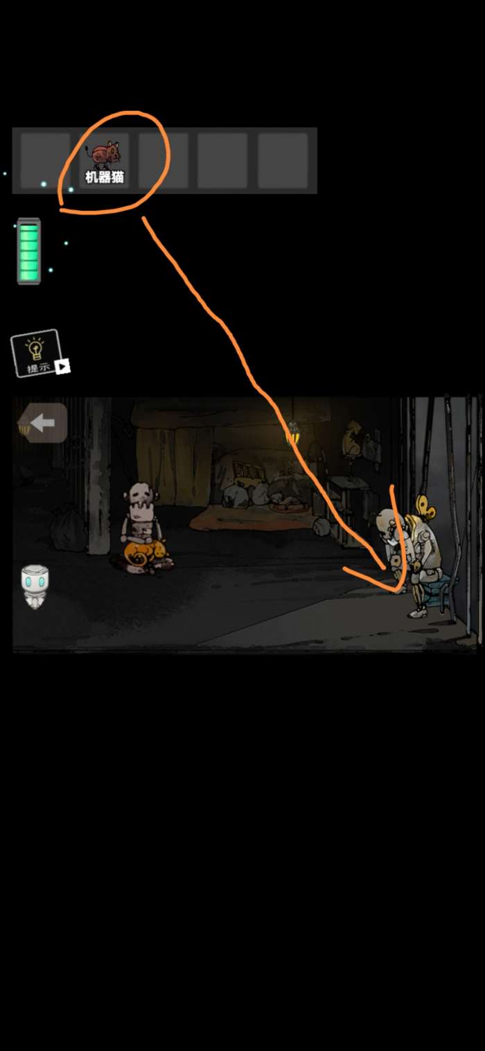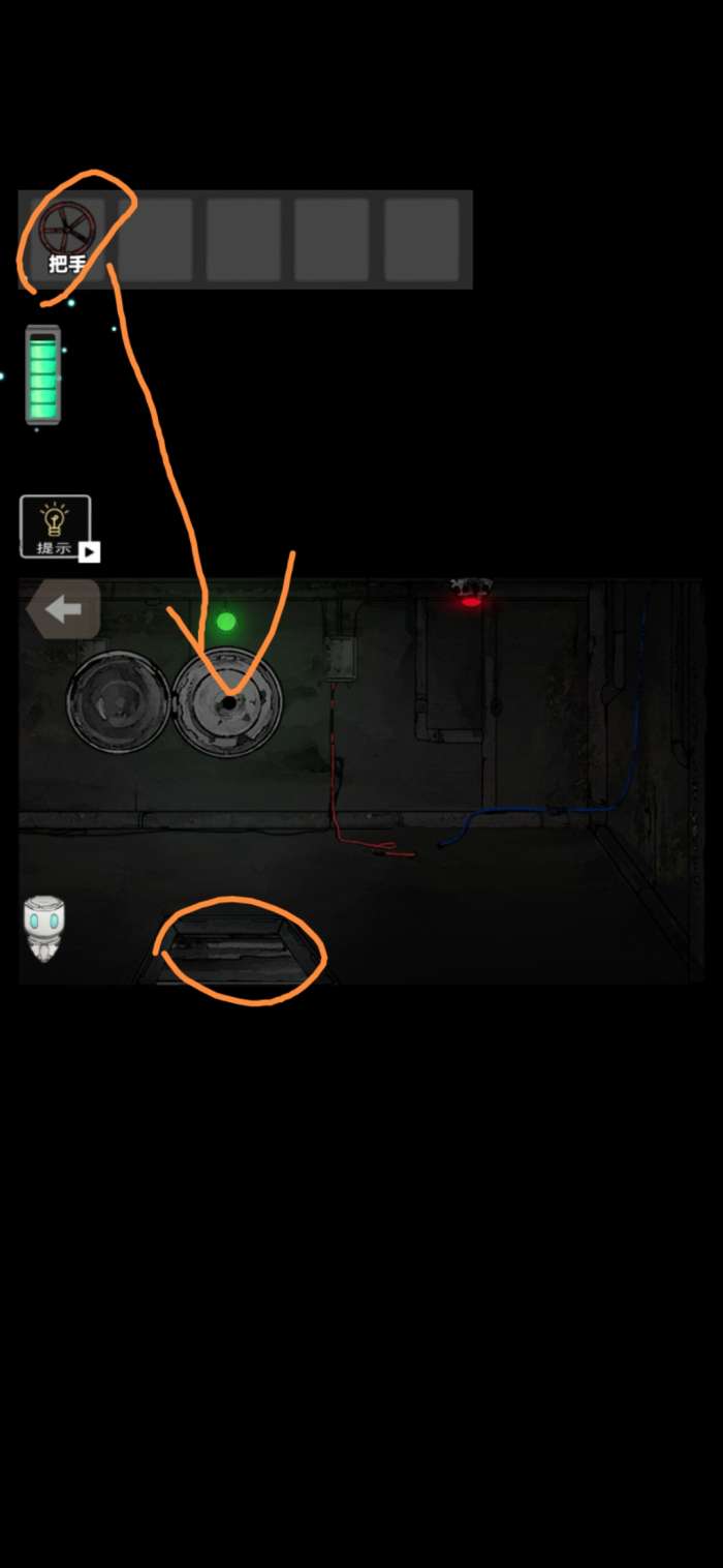 回到一号仓把机器猫交给机器人,来到最上层拿走把手,回到三号仓装上把手打开逃生口进入后来到场景六