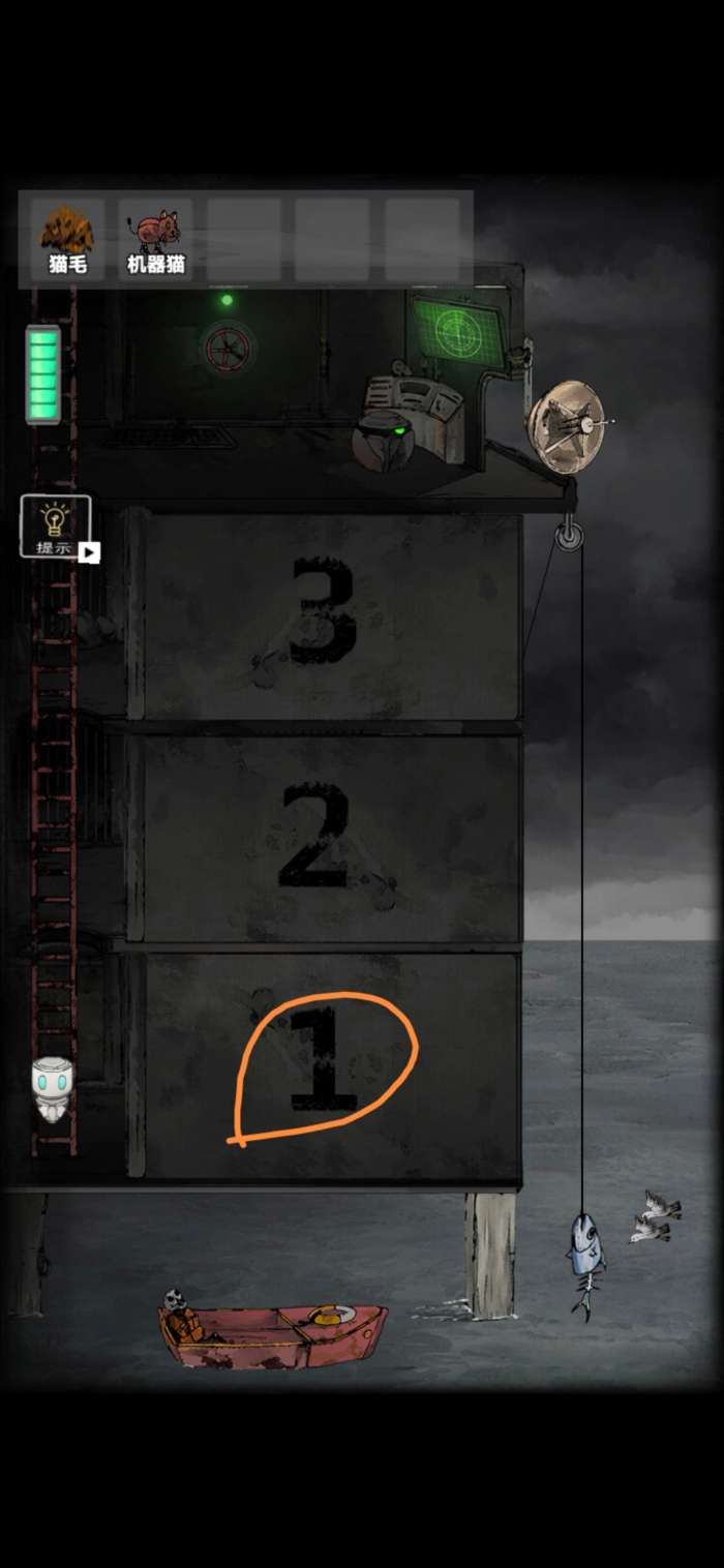 进入二号仓点击机器人根据规律输入283,再把机器猫交给他得到完好的机器猫