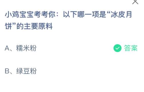 以上就是小鸡宝宝考考你:以下哪一项是“冰皮月饼”的主要原料,支付宝蚂蚁庄园2025年10月6日答案最新,更多精彩内容,请点击关注pk游戏网更新!