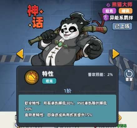 生存33天熊猫大师怎么玩?如果在生存33天里面大家喜欢玩的是坦克类型角色的话,那么在下面小编为大家推荐的就是这个熊猫大师,生存33天熊猫大师怎么玩要看大家能不能拿准他的前排效果,熊猫大师目前在坦克类型当中,他的保C位强度是最突出的,所以很多输出角色如果大家用的是比较脆皮类型的英雄,那么这里放一个熊猫大师在前排,整体的一个防御数值就会得到更多的提升。