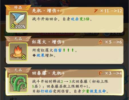 5. 回春藤(木属性神通):多条件触发;技能定位偏向保命辅助,回血减伤。