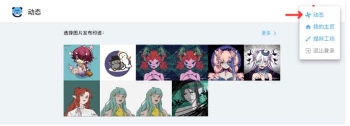 当你生成原图之后就可以使用印迹功能来发布你所捏出的图啦,在"动态"页面顶部的图片记录中选择自己曾经生成过的原图来发布。