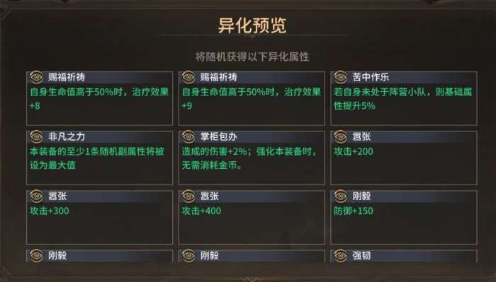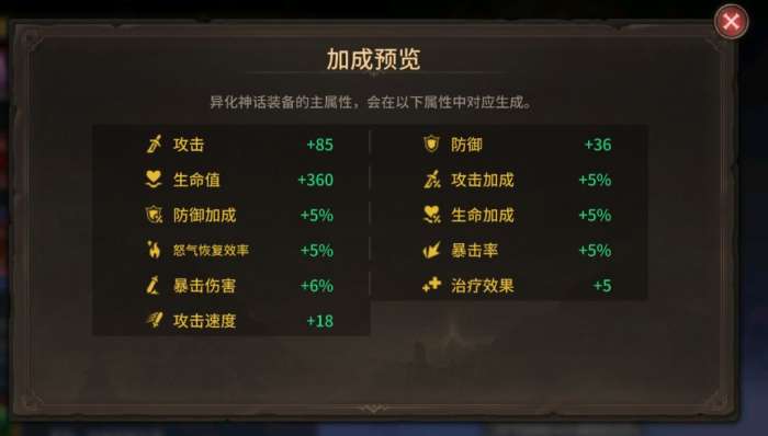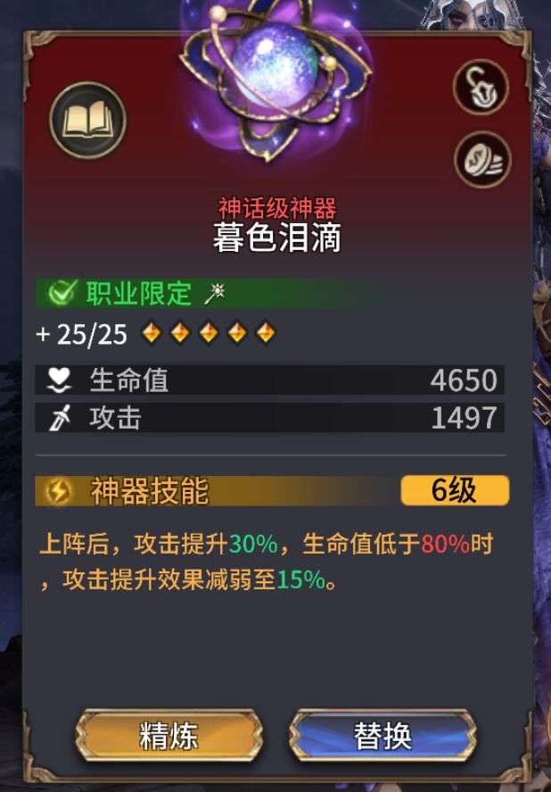 数值选择比较简单,优先选择攻击加成、暴击伤害,其次才是生命加成、怒气恢复效率、攻击速度;辅助位、前排的神器精炼优先级低于核心。