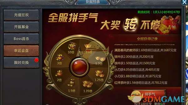 投入一定数量元宝。获得翻倍奖励。倍数就是抽中的倍。第二天邮件返还元宝。值得注意的是参与轮盘的元宝将不参与消费活动。也就是每周五的消费狂欢活动不再参