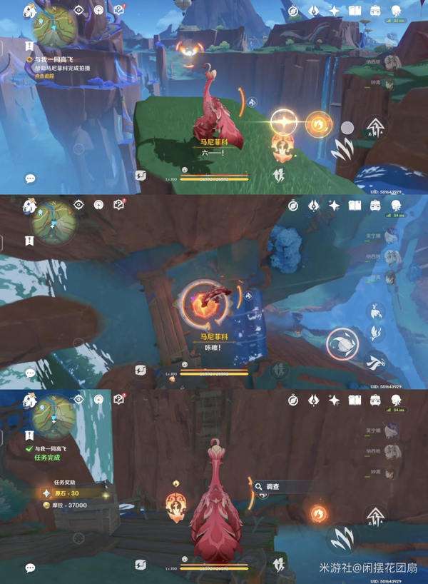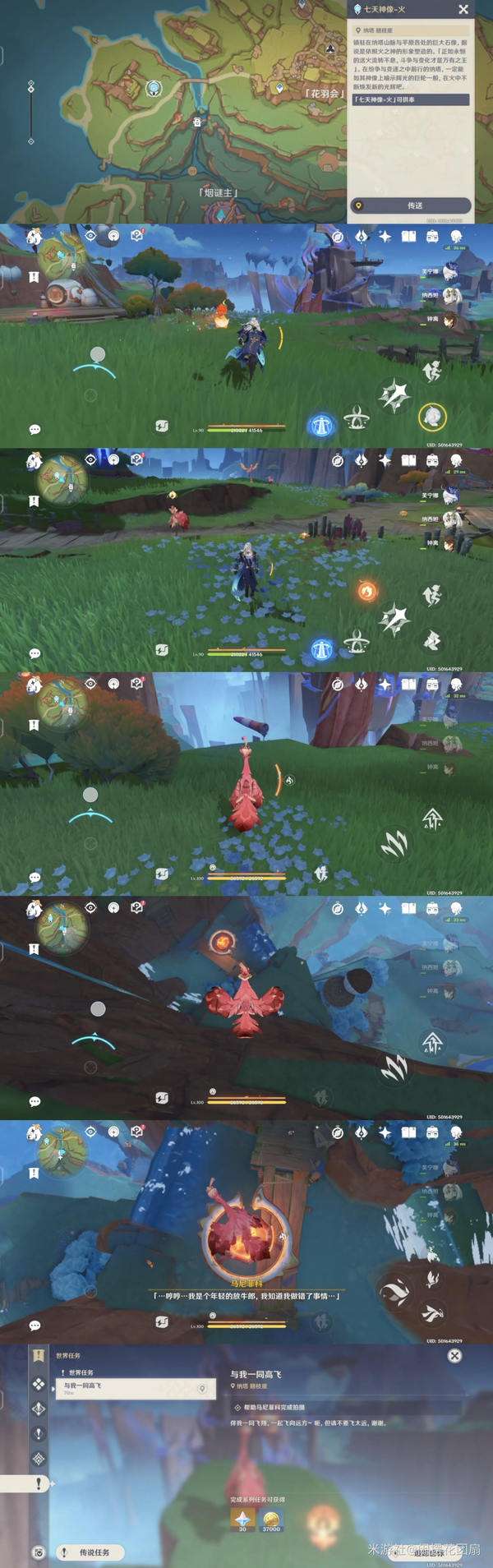 从神像出发,跳下瀑布,靠近游击环进入剧情并接取任务与我一同高飞