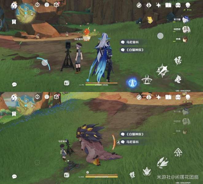 从传送点出发,到花羽会西北的山谷,靠近马尼菲科进入剧情