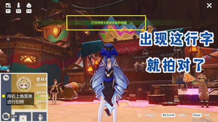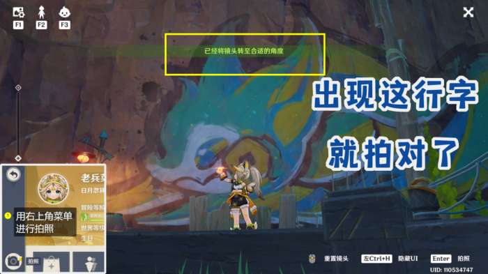 拍摄时使用左上角菜单相机按钮拍摄,如果地点对,拍照时会有行字提示。