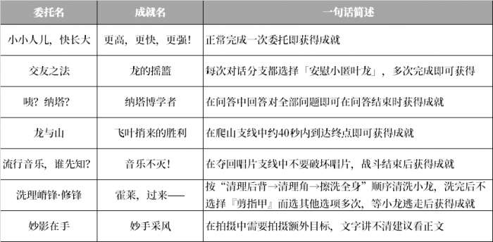 在修锋中要按照正确顺序:『清理后背』→『清理角』→『擦洗全身』清理。之后不选择『剪指甲』而是多次选择『摸摸肚子』『捏捏手』,等小龙跑走后就能获得成就。可见折叠: