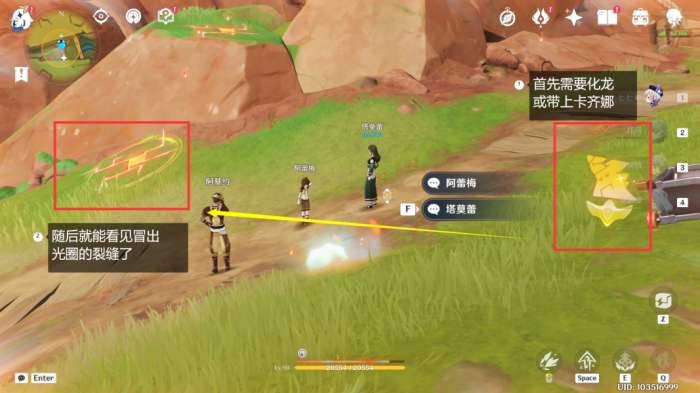 观察力就是要化龙或者队伍里有卡齐娜,然后找下图这样在闪着圈的裂缝。