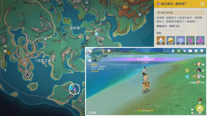 成就委托的刷新地点为「流泉之众」南方海滩上。