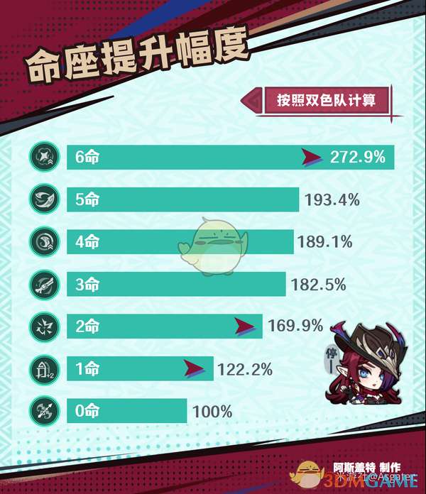 ① 更利好双色队,0命双色队的3号子弹为67%概率染色,解锁1命后双色队恰斯卡的3号子弹必定染色,很好地提高双色队的输出效率。