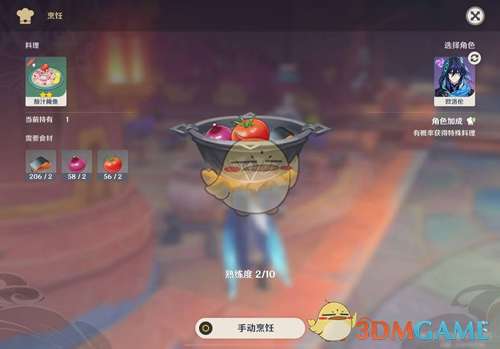 1、首先我们需要完成前置任务来获得酸汁腌鱼,然后使用角色前往烹饪;