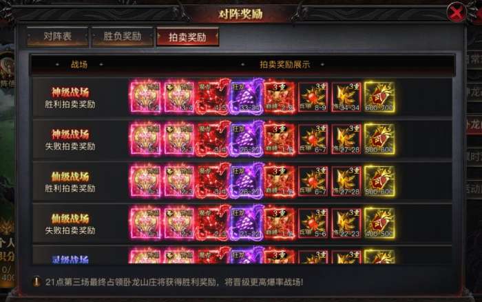 四、胜利奖励总览成功夺取卧龙山庄后,全服共享: