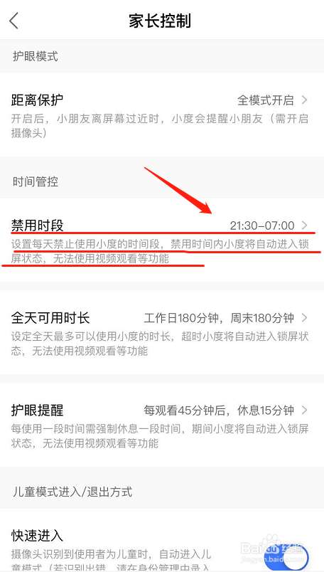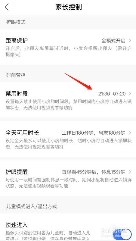 6、设置后,返回即可,禁用时间内小度将自动进入锁屏状态,无法使用视频观看等功能