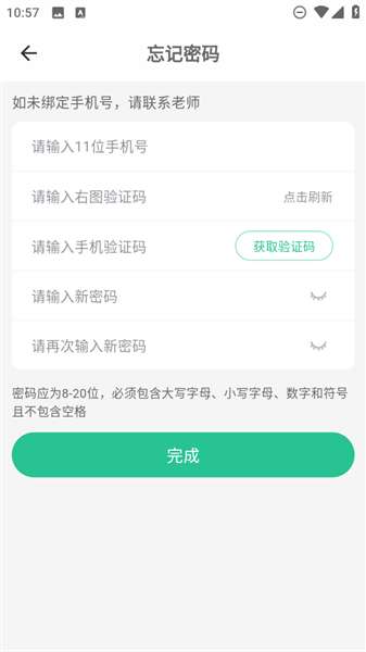 3、如果绑定手机号了,就依次填写手机号,验证码以及新密码重置即可。