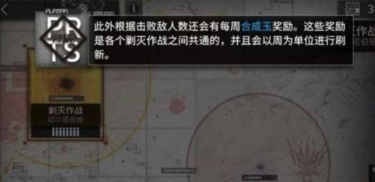 根据击败敌人的数量,每周还会有合成玉的奖励。所有剿灭作战地图的击败敌人数量会相互计算。因此,击败更多的敌人将有助于获得更多的奖励。这个玩法实际上就是要尽可能多地攻击和击败敌人。